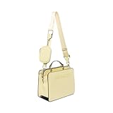 Bolso de mano tela a mano de piel vegano para mujer, bolso de mano con asa superior para las axilas con bolso, Amarillo, L