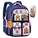 Mochila Infantil con Capibara - Mochilas Escolares para Primaria con Gran Capacidad, Bolso de Cómoda y Ergonómica para Niños con Múltiples Bolsillos + Estuche para Lápices