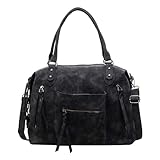 Bolsos de mano de poliuretano esmerilado con cierre y correa ajustable para el hombro con asa corta para el trabajo, viajes, Negro -