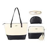 Verdthos Set de 3 Bolsos para Mujer - Bolso de Mano, Bandolera y Monedero de Cuero PU - Juego Elegante Blanco/Negro para Trabajo/Viaje/Fiesta