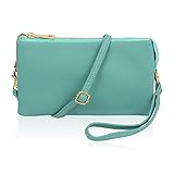 RIAH FASHION - Bolso de mano convertible de piel vegana â Bolso pequeño para telĂ©fono/ranuras para tarjetas y muñeca desmontable/bandolera, Pebbled - Jade
